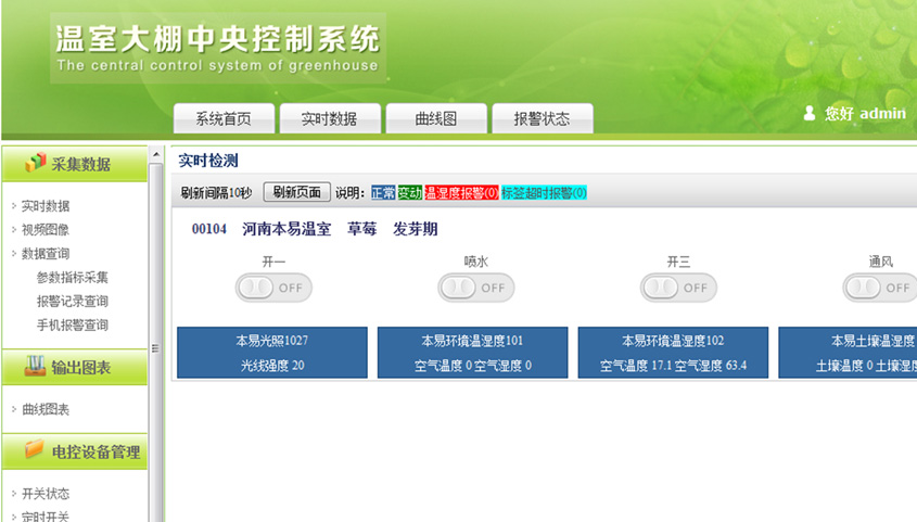 本系統(tǒng)采用RFID及物聯(lián)網(wǎng)技術(shù)建立核心體系架構(gòu),并以公共云計算模式為用戶提供大棚種植業(yè)務(wù)的全面信息服務(wù)及決策服務(wù)。實現(xiàn)全面監(jiān)測、智能分析、科學(xué)指導(dǎo)一體化的大棚應(yīng)用服務(wù)平臺。項目通過實時采集并檢測溫室內(nèi)的各項參數(shù)指標,從而實現(xiàn)智能化控制溫室內(nèi)各電控設(shè)備的開關(guān);同時通過設(shè)置安全閾值,實現(xiàn)了超出閾值的警報的功能。