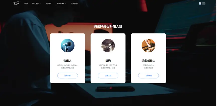 首頁(yè):音樂人認(rèn)證、詞曲作者、已入駐音樂人、已入駐詞曲作者、熱門原創(chuàng)