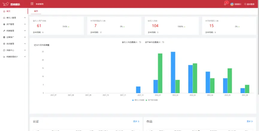 音樂人管理:注冊(cè)認(rèn)證、認(rèn)證審核、作品上傳、作品審核、授權(quán)簽約、藝人結(jié)算